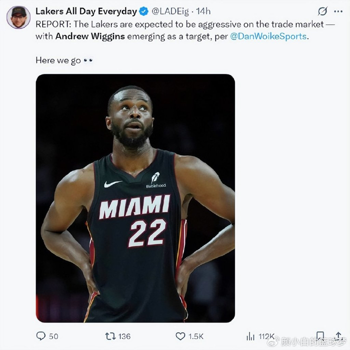 《体育画报》也跟踪报道,湖人队有意交易得到维金斯,热火队想要得到湖人队的首轮签而不是克内克特。
