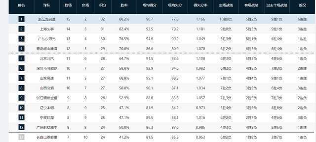 CBA最新排名!上海狂胜北京杀回第2,黑马逼近前四,辽宁跌至第10